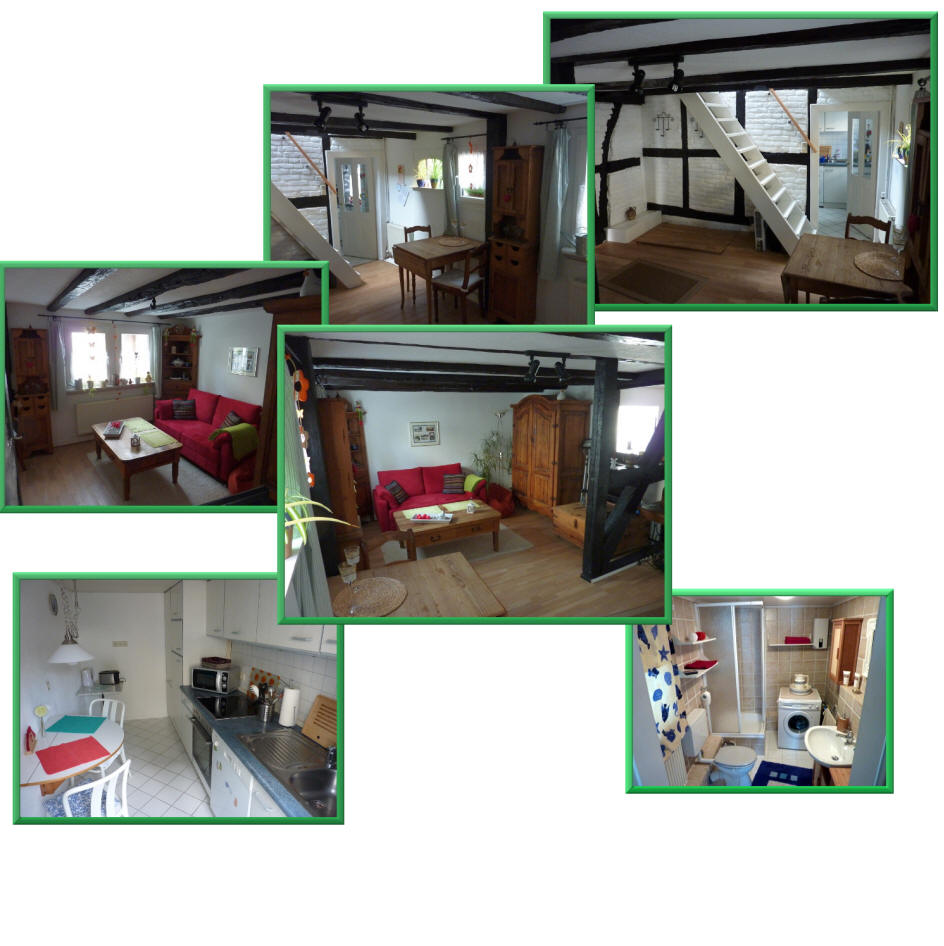 Im Erdgeschoss befindet sich die voll ausgestattete Küche mit Frühstückstisch, ein Duschbad, sowie das Wohnzimmer mit ausziehbarer Schlafcouch, einem Fernseher und einem Esstisch für 2 Personen.